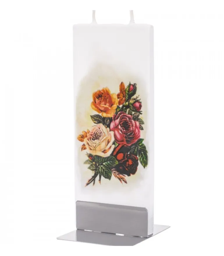 Bougie Décorative Double Meche, Motif Bouquet De Roses.