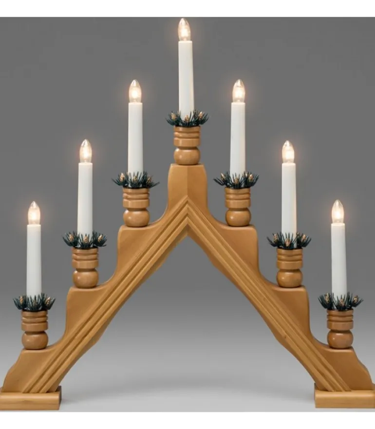 Chandelier Pyramide A Bougie Electrique Avec Décorations, Couleur Chene.