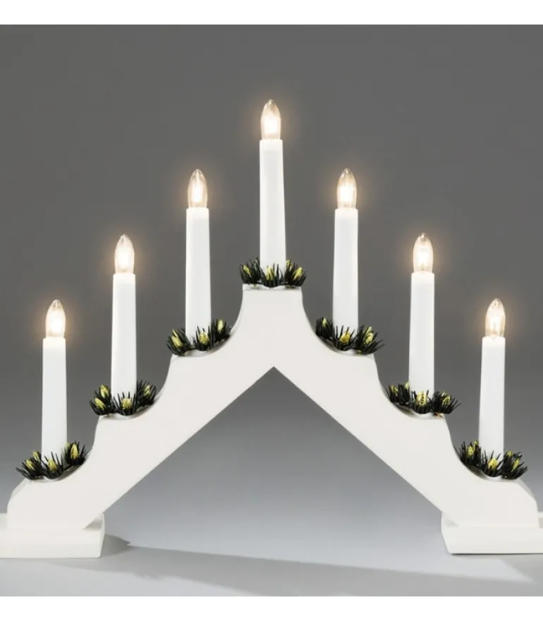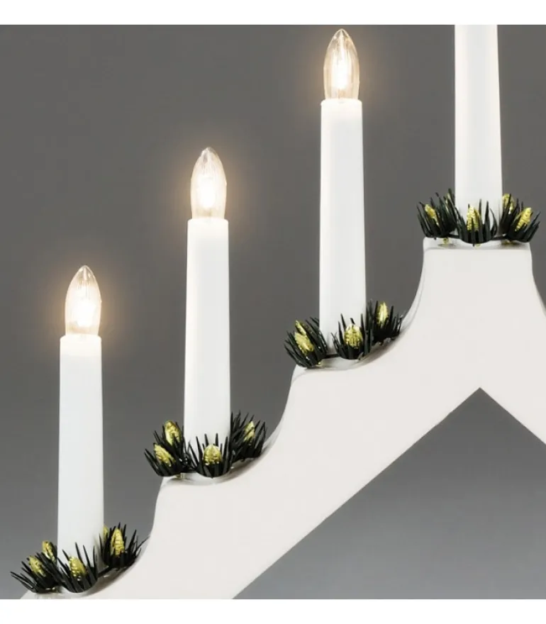 Chandelier De Noël Pyramide En Bois A Bougie Electrique, Couleur Blanc.