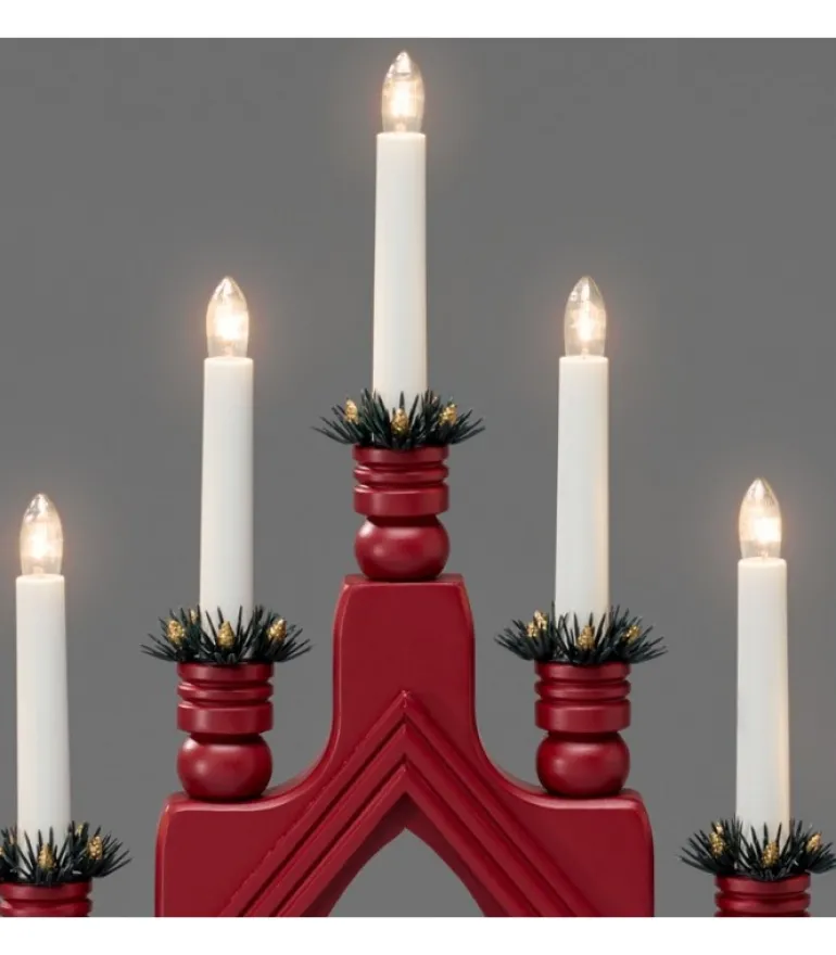 Chandelier Pyramide A Bougie Electrique Avec Décorations, Couleur Rouge.