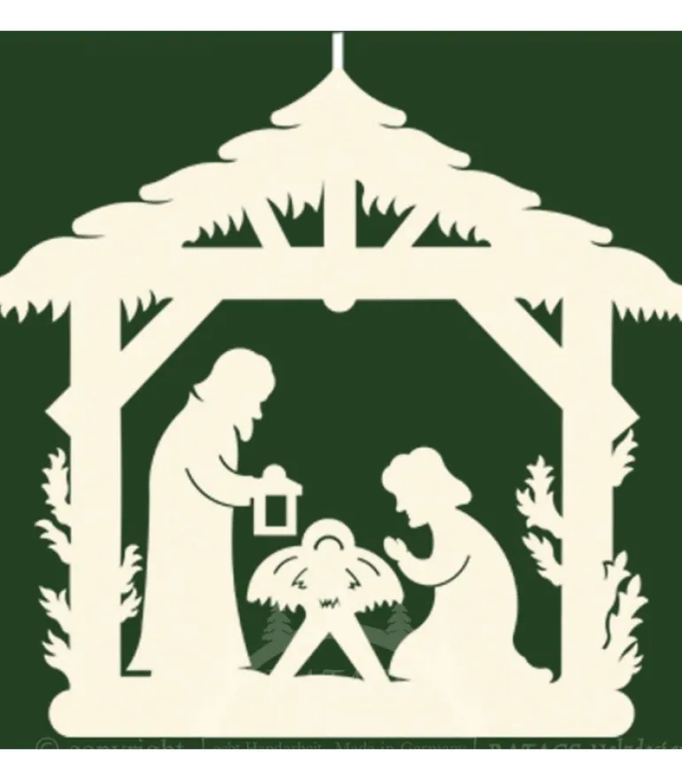 Décoration De Noël A Suspendre, Crèche En Bois Découpe.