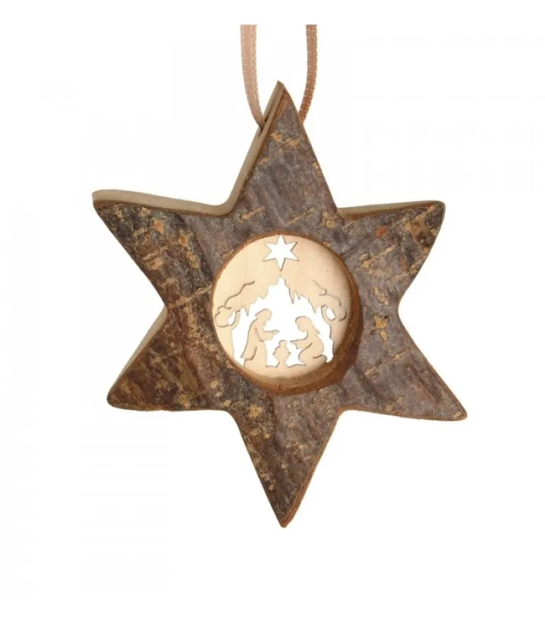 Crèche De Noël En Ecorce 12,5 Cm, Avec Nativite En Bois D’Erable