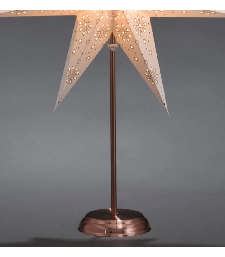 Etoile Lumineuse Electrique 7 Branches En Papier, Blanche, Sur Pied Cuivre 48 Cm