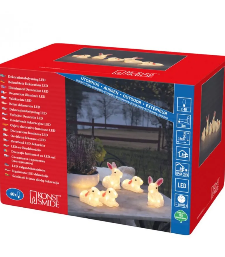 Lapins Lumineux 14 Cm En Acrylique, 40 Diodes Blanc Chaud