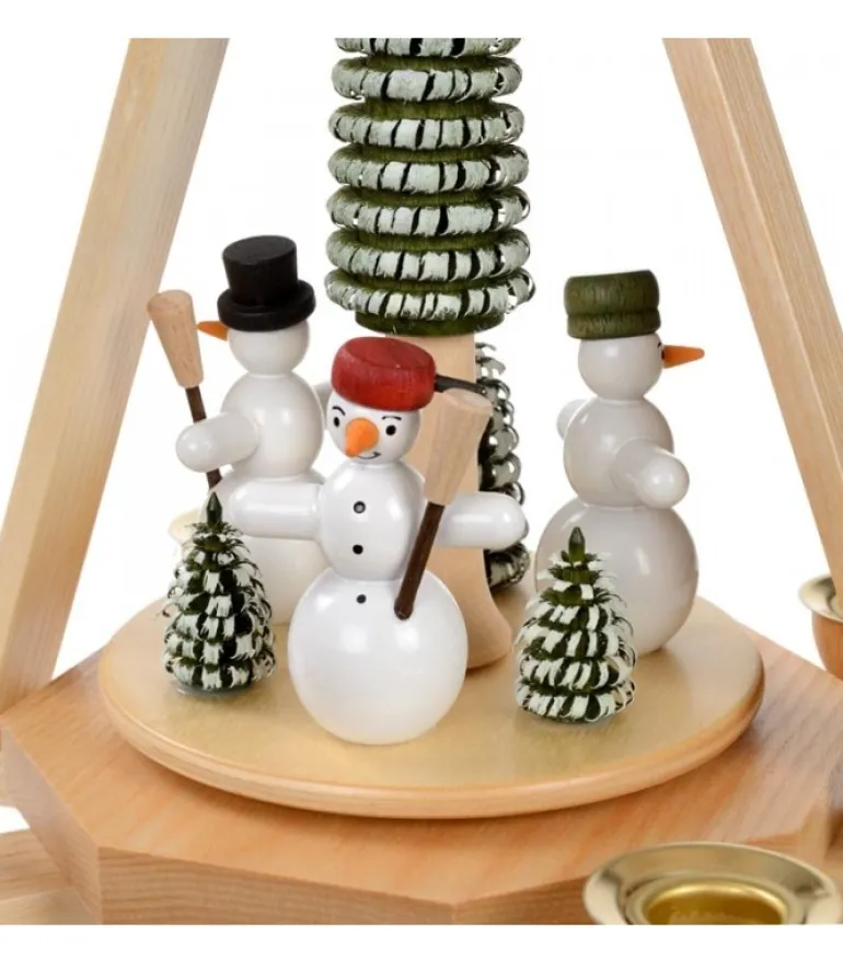 Pyramide A Bougie Avec Bonhommes De Neige Autour D’Un Sapin.