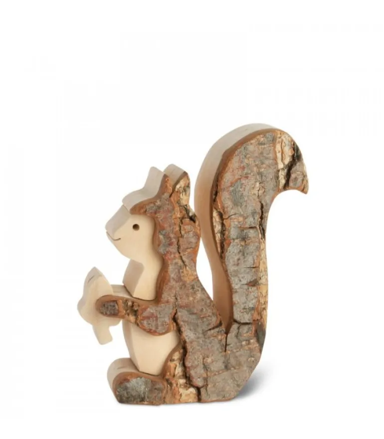Ecureuil En Bois 7,5 Cm Avec Une Noisette Entre Les Pattes.