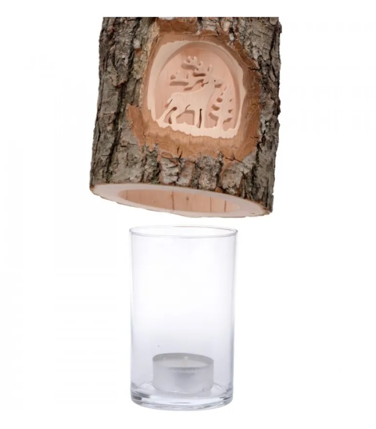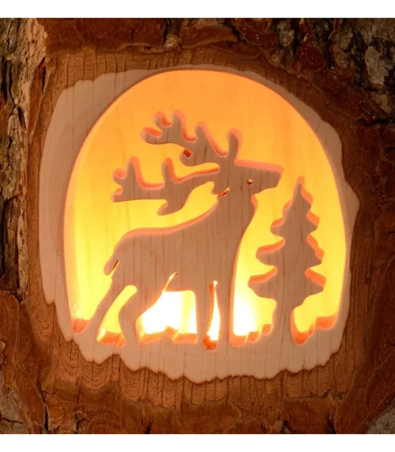 Photophore En Bois Avec Motif Cerf En Foret Realise En Bois Cisele.