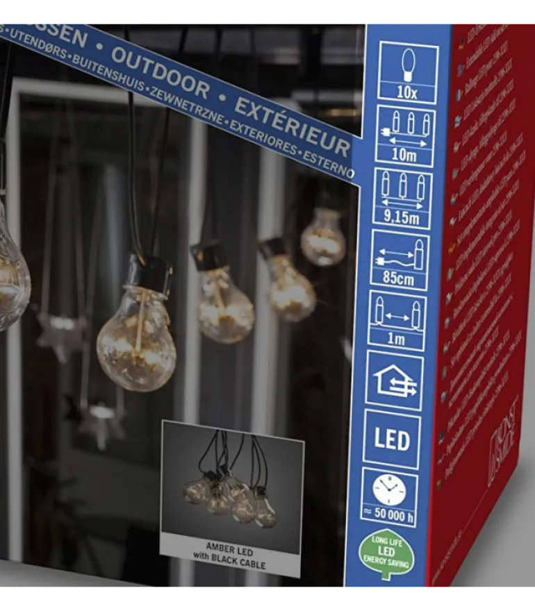 Rallonge 10 M Pour Guirlande Lumineuse De Terrasse, 10 Ampoules Ambrees