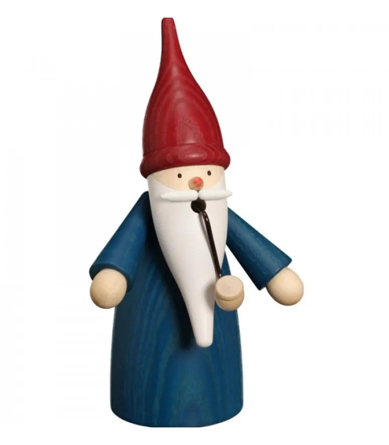 Modele Père-Noël Fumant La Pipe Avec Un Bonnet Rouge Et Manteau Bleu.
