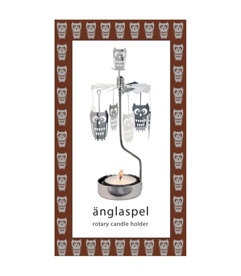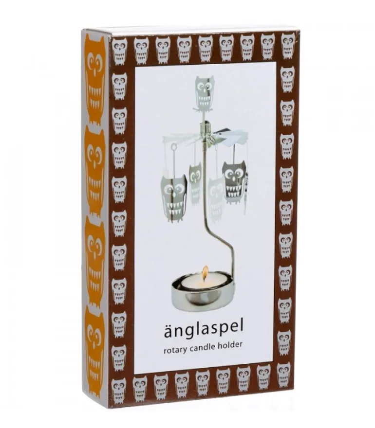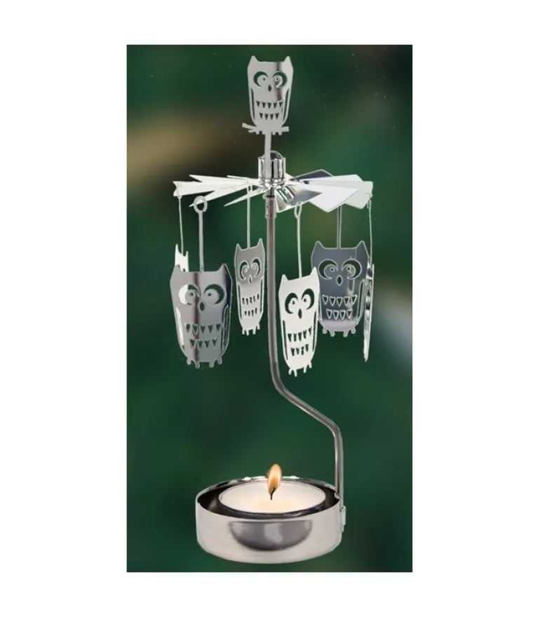 Bougeoir Carrousel Chouette En Metal Chrome.