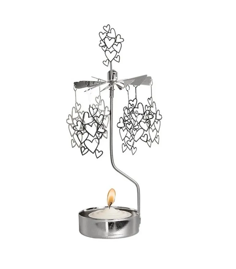 Bougeoir Carrousel Petit Coeur En Metal Chrome.