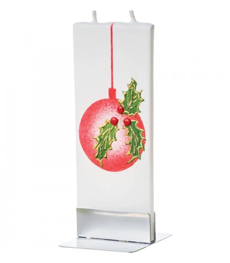 Bougie Décorative Double Meche, Motif Boule Et Houx.