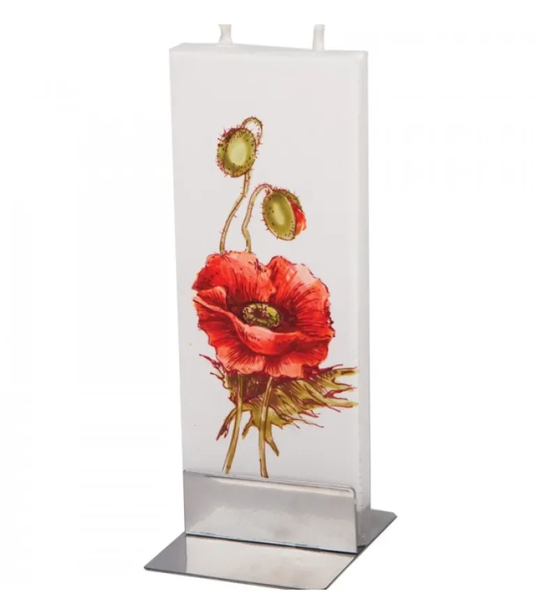Bougie Décorative Double Meche, Motif Fleur De Coqueliquot.