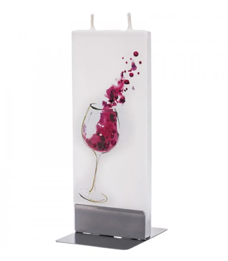 Bougie Décorative Double Meche, Motif Verre De Vin Rouge.