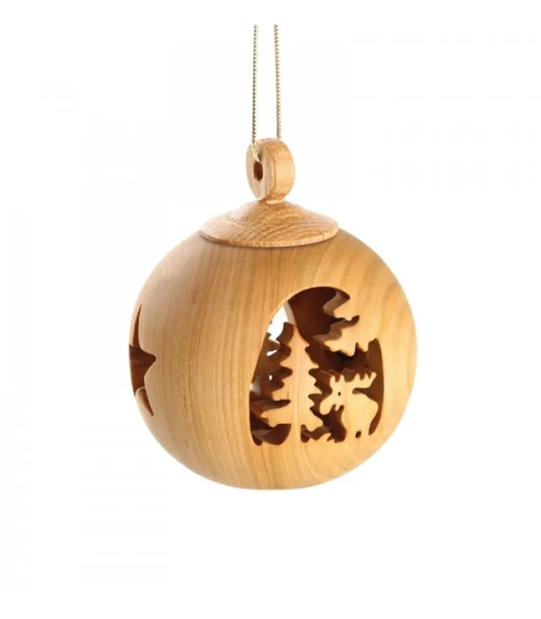 Décoration Originale Pour Le Sapin, Boule De Noël En Bois A Suspendre Avec Un Motif Elan Sur 2 Faces.