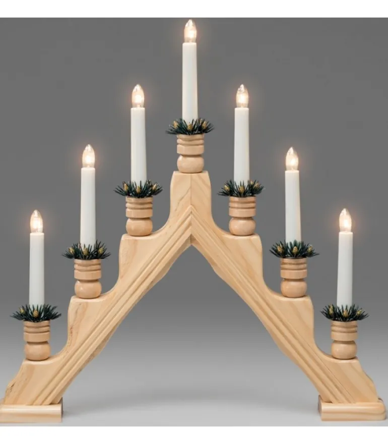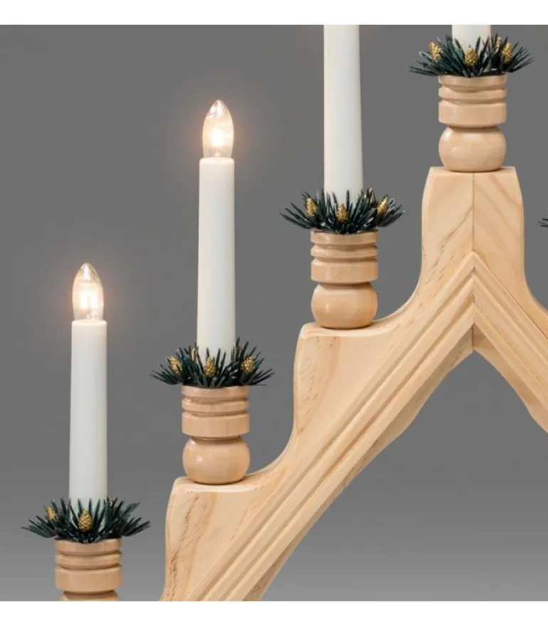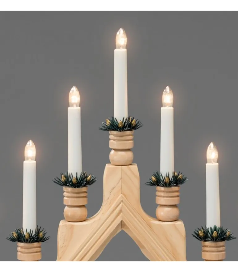 Chandelier Pyramide A Bougie Electrique Avec Décorations, Couleur Naturelle.