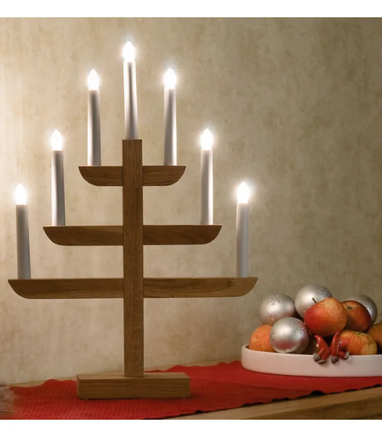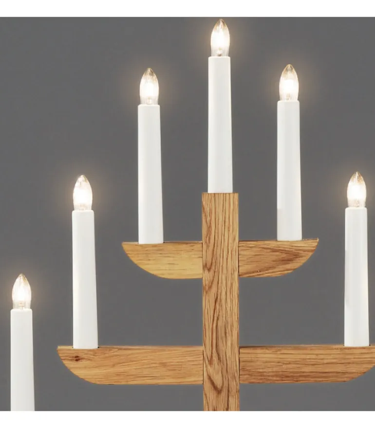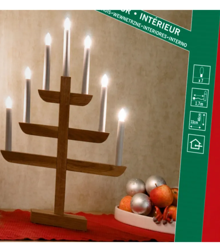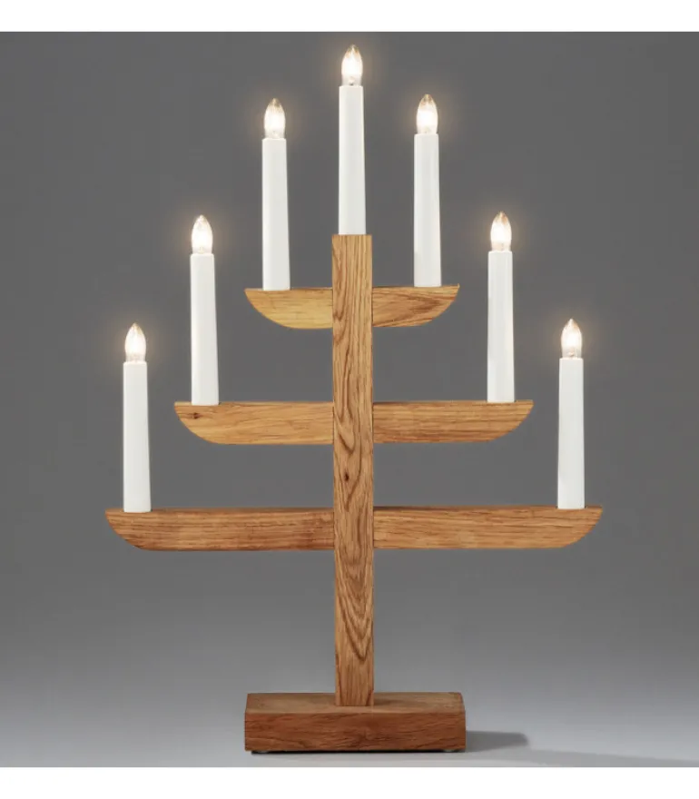 Chandelier De Noël 7 Ampoules, En Bois De Chene Naturel Huile.