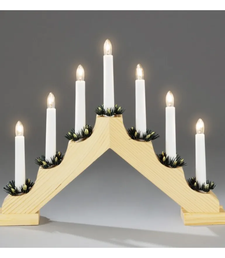 Chandelier Pyramide En Bois A Bougie Electrique, Couleur Naturel.