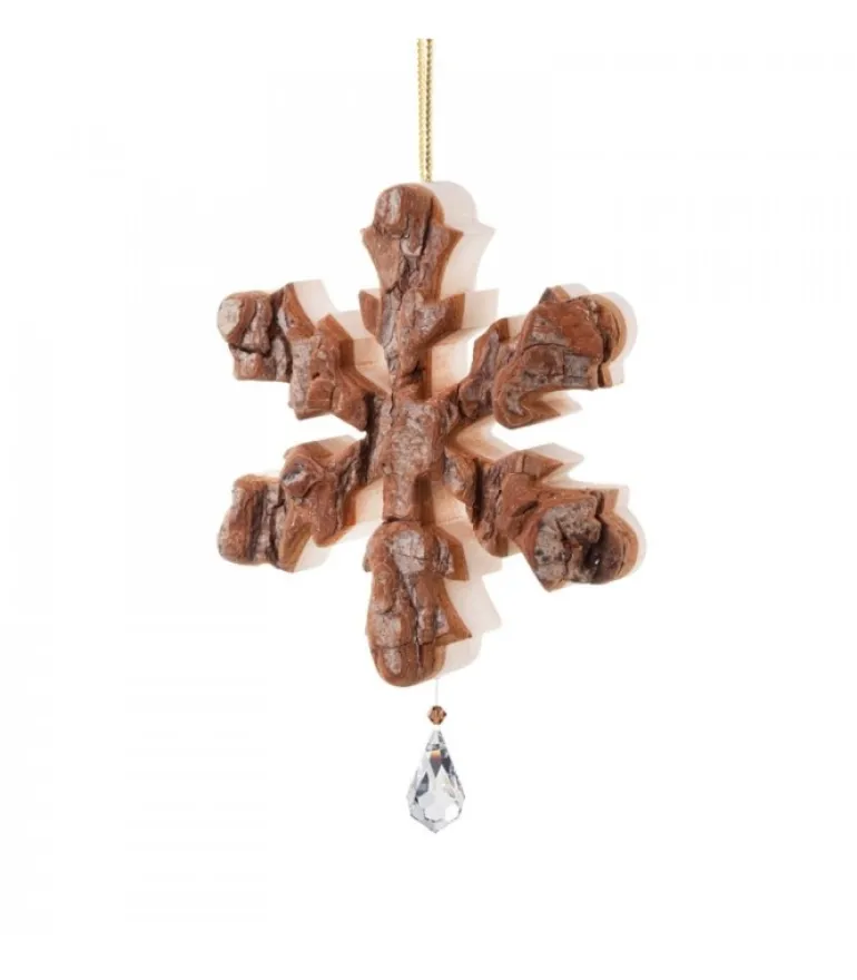 Flocon De Neige En Ecorce A Suspendre Avec Cristal Swarovski.