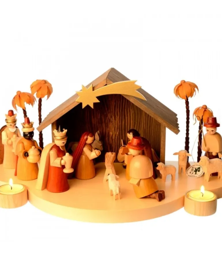Mini Crèche De Noël Avec Personnages En Bois D’Olivier, 5 Cm