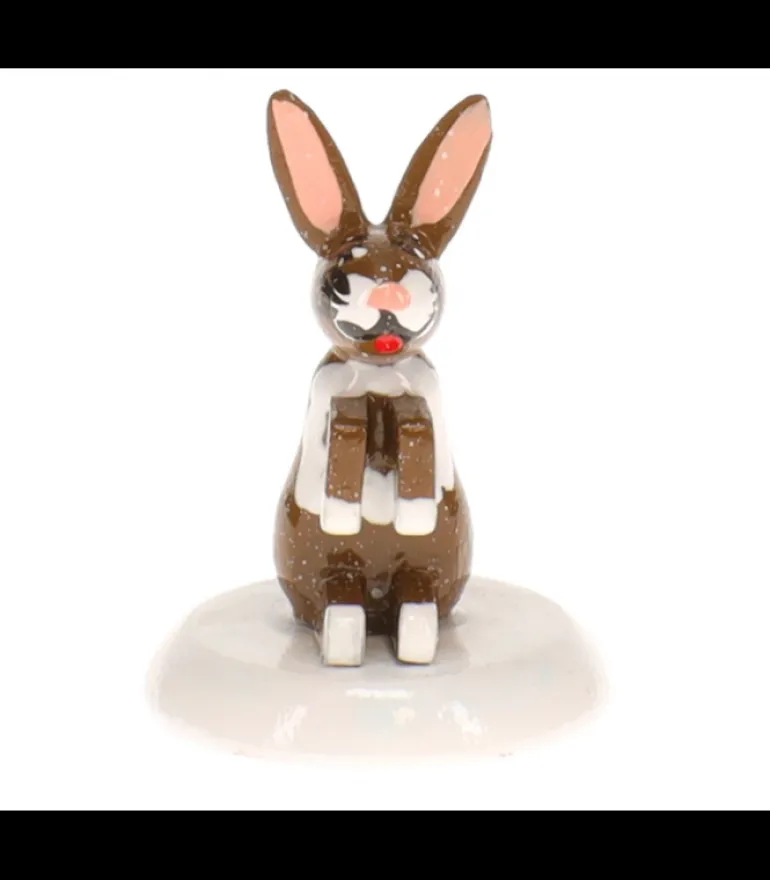 Un Petit Lapin Marron Ou Une Petite Hase Toute Mignonne. La Figurine Du Lapin Au Milieu De LÀ Neige Peut Donner Un Petit Cote Feerique A Votre Village De Noël Miniature.