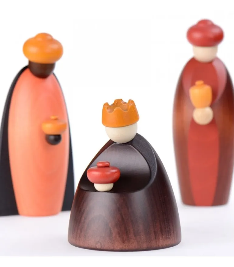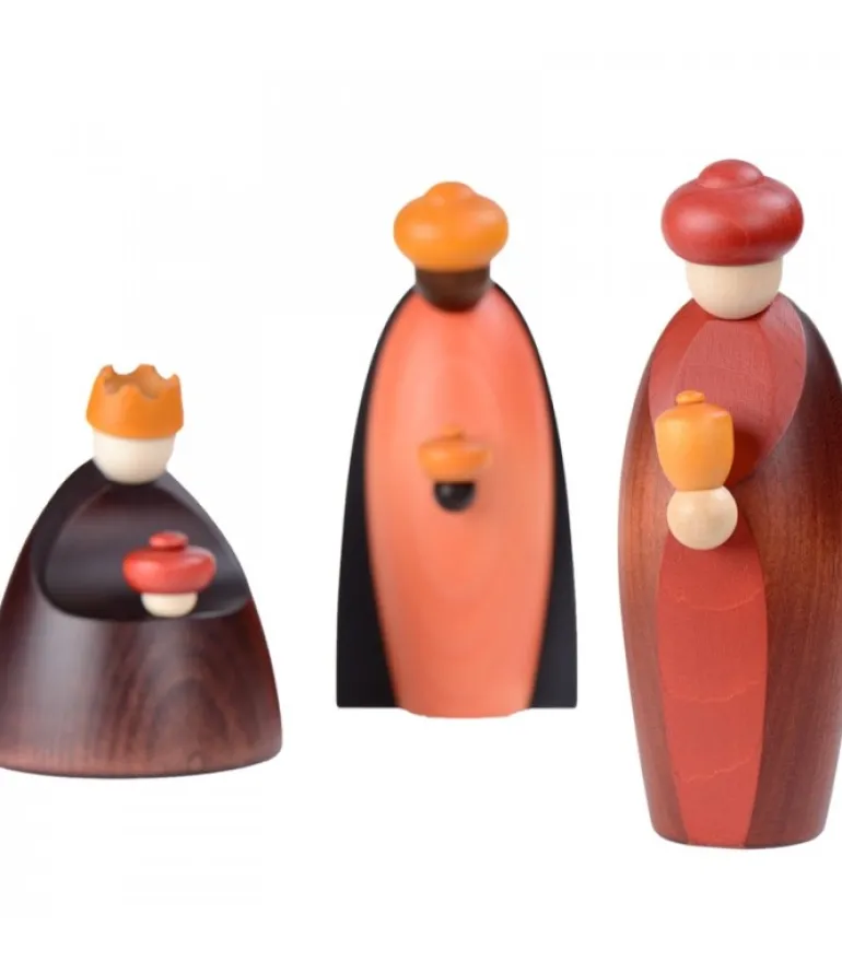 Figurines Bois Pour Crèche De Noël, Les Trois Rois Mages, 12 Cm
