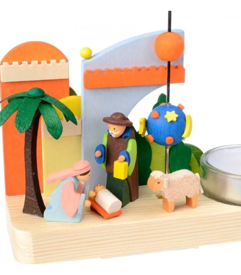 Petit Carrousel En Bois Crèche De Noël Avec Enfant Jesus, Marie Et Joseph.