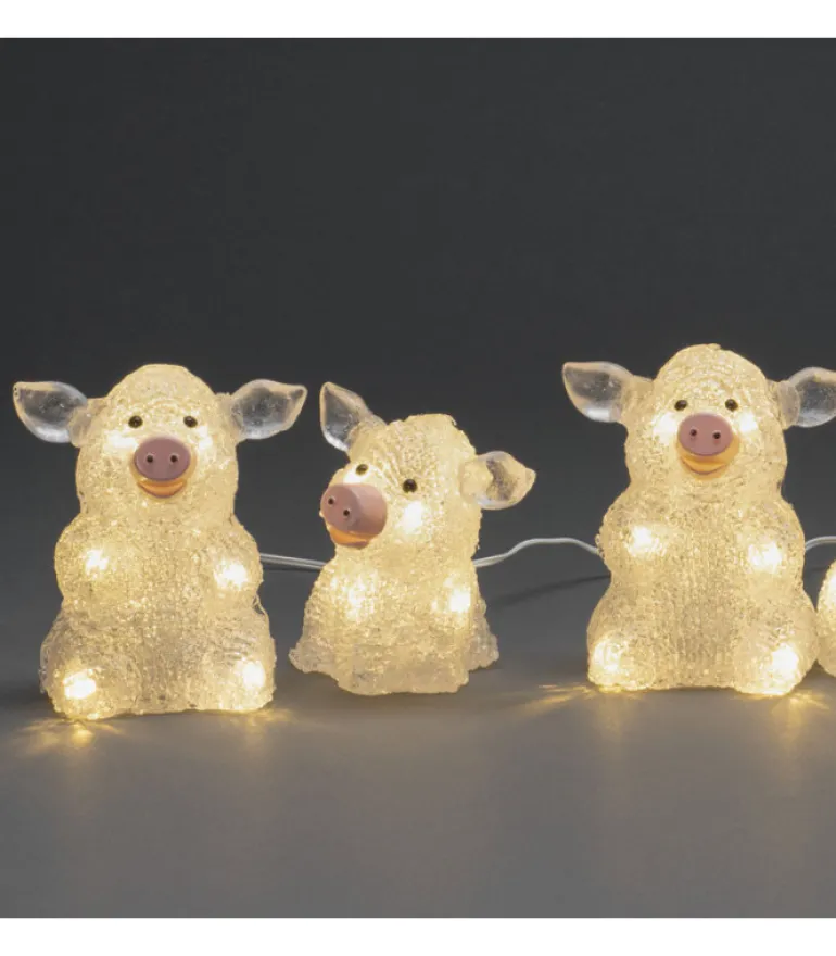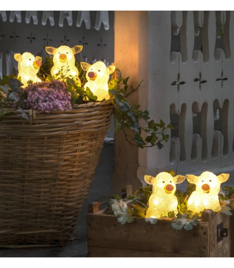 Lot De 5 Petits Cochons En Acrylique A Led, Transparent, 40 Diodes Blanc.
