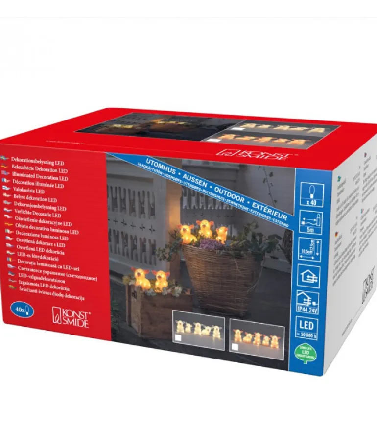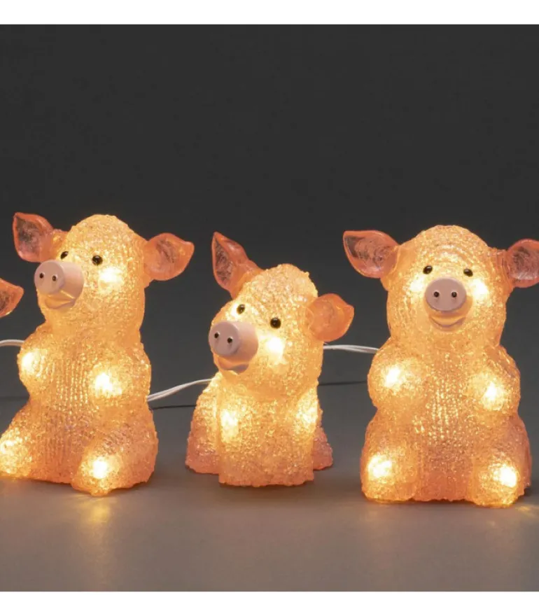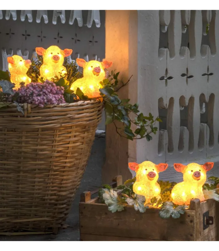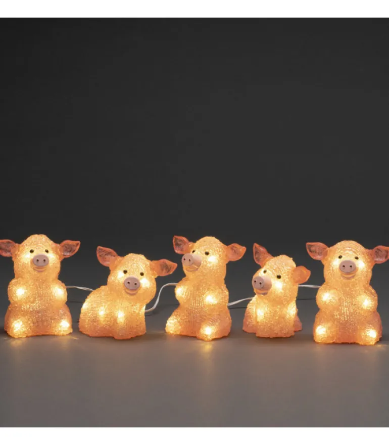 Lot De 5 Petits Cochons Roses En Acrylique A Led, Transparent, 40 Diodes Blanc.