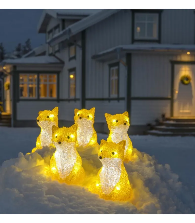 Renards Lumineux Acryliques Led Assis, Lot De 5, 40 Diodes Blanches Froides.